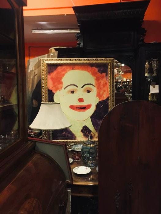Art as a commodity is a social contract. We must agree, and do, that a Mark Rothko painting is more valuable than this “treasure” I recently came across in an antique store. Like it? It’s still for sale.