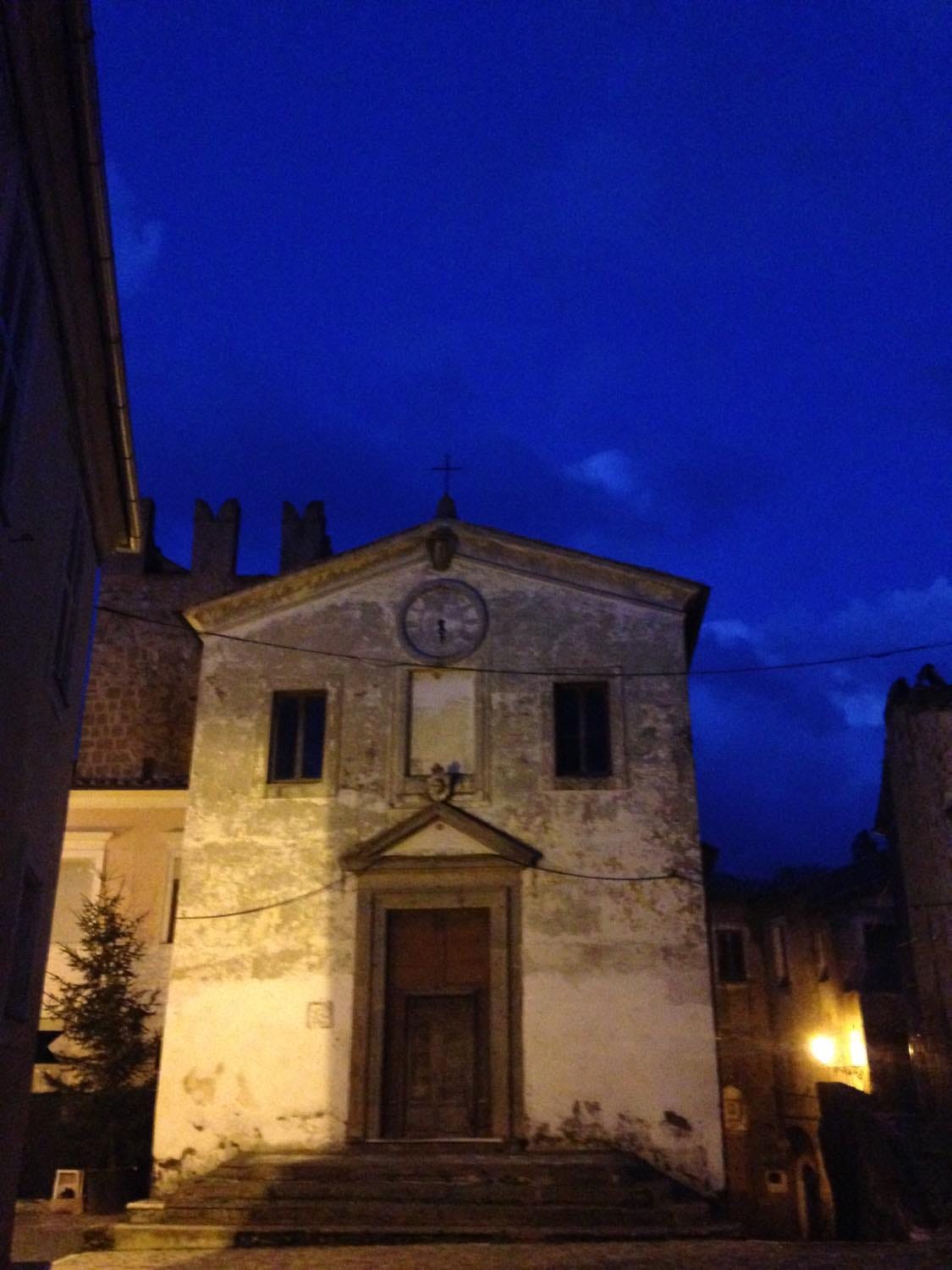 The path took us to a piazza, deserted except for a few locals. To the right was a flight of steps leading a 15th century church. To the left and directly in front of us were narrow cobblestone streets, the ends of which disappeared into yet more alleyways. The air smelled of wood smoke and wet stone and must.