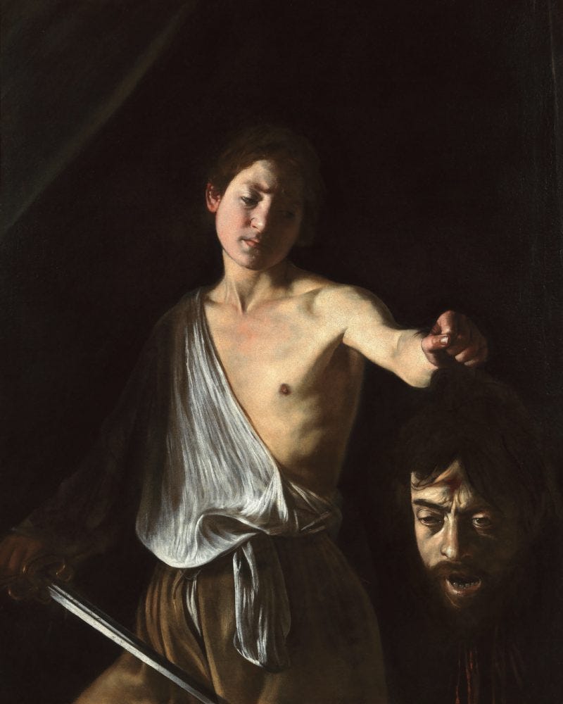 A more urgent question, especially now, might be this: does Caravaggio’s moral failings invalidate his importance as an artist? If not, why not? Personally, I’ll never watch another Woody Allen film because I find his casual misogyny and hebephiliac obsessions stomach turning, but as far as I know, Woody’s never killed anyone. But I do find myself wondering why it’s easier to forgive Caravaggio for his homicidal rages than I do Harvey Weinstein for sexual assault. Is it the softening effect of time? A romanticization of the past? Or am I indulging the “foibles” of an artist whose work feels as though it is the first natural representation of human suffering?