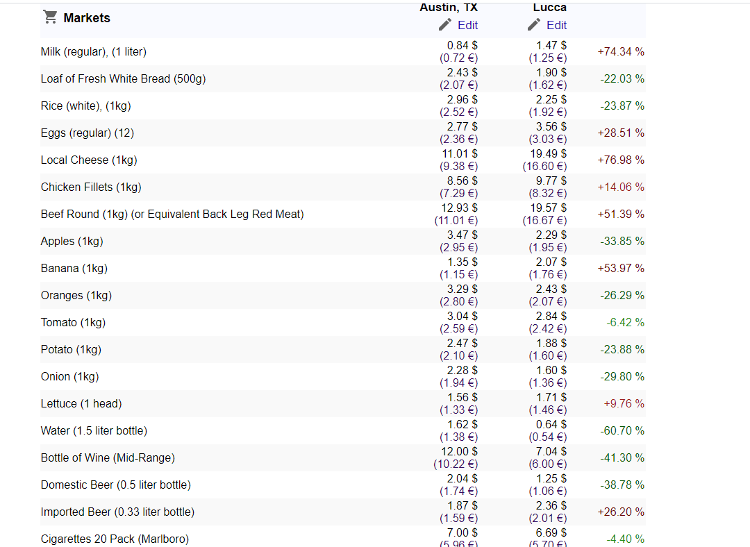 Local Purchasing Power in Lucca is 64.68% lower than in Austin, TX