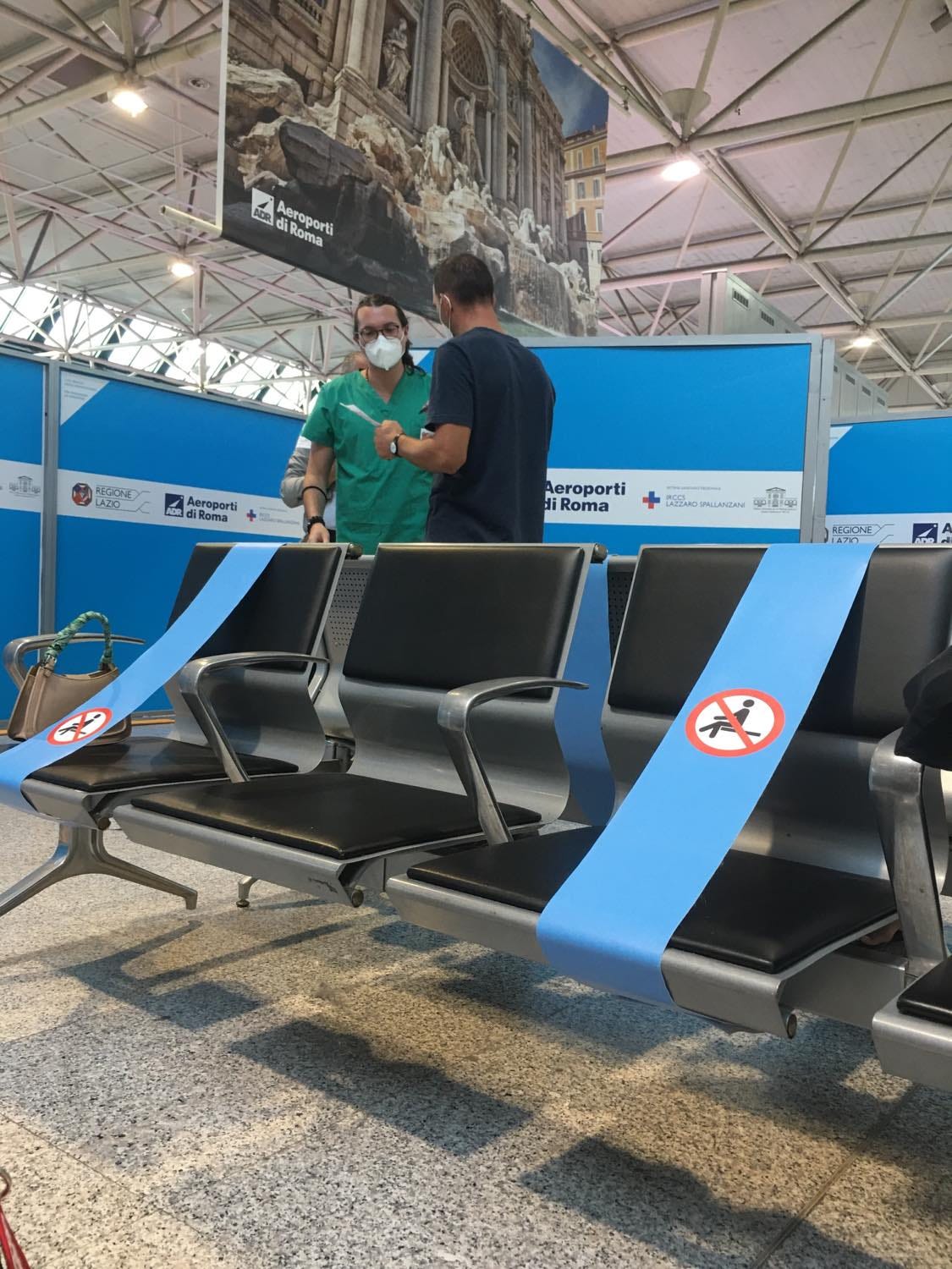Once we got to Fiumicino, no one at Vax and Go asked to see my boarding pass. One of the guards gave it a cursory glance before admitting me to the Mezzanine level of the airport, but that was it. I waited with six other people in a cordoned-off area for the crabby receptionist to acknowledge us. It wasn’t encouraging to see her sending people away. “Sorry, we can’t vaccinate you,” she told the woman in front of me who was wearing a sari. “You aren’t an EU citizen.”
