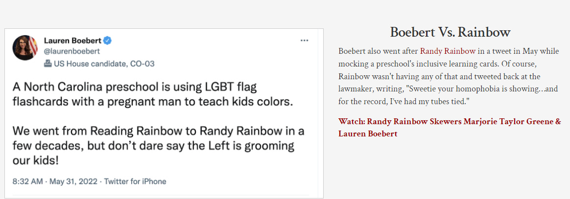 This isn’t a free speech issue. It’s a public service issue. We need laws governing the behavior of those we elect to govern ourselves. The minute an elected official sets foot inside a government building, he or she must be held to a higher standard, even if it temporarily impinges on the right to free speech. Failure to hold Colorado Representative Lauren Boebert accountable for the bigotry that comes out of her mouth incentivizes the worst among us to show up at Nancy Pelosi’s house in San Francisco and take a hammer to her eighty-year-old husband’s head.