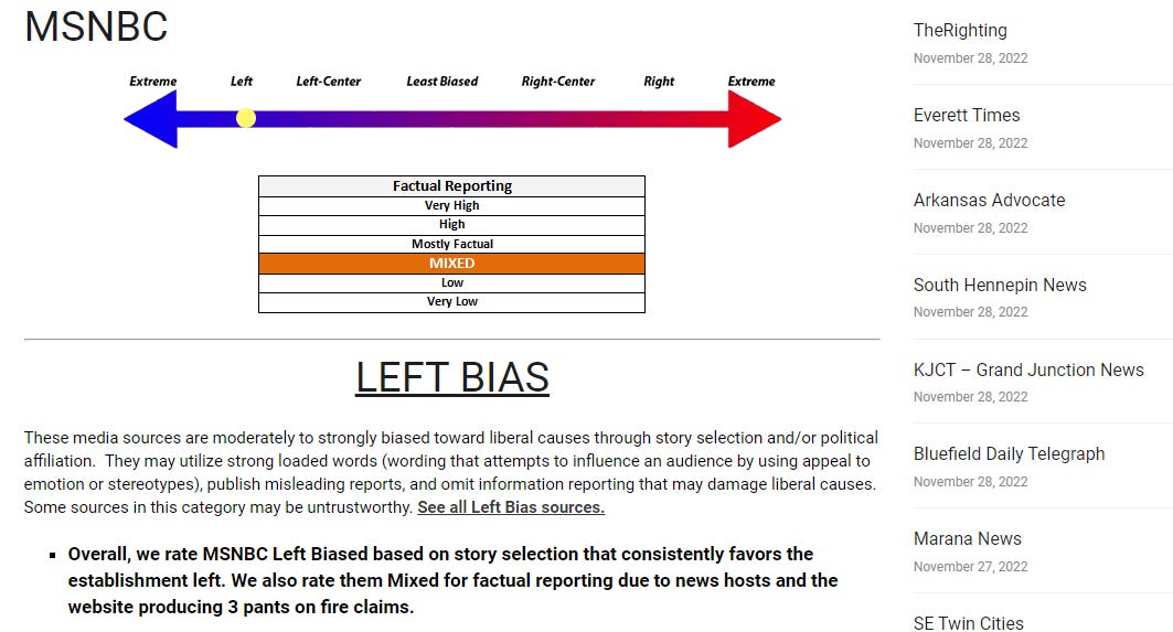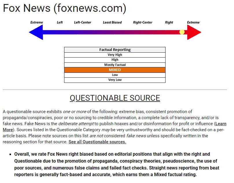 To be fair, my go-to station, MSNBC, doesn’t fare much better, although they aren’t considered a “Questionable Source” like Fox News.
