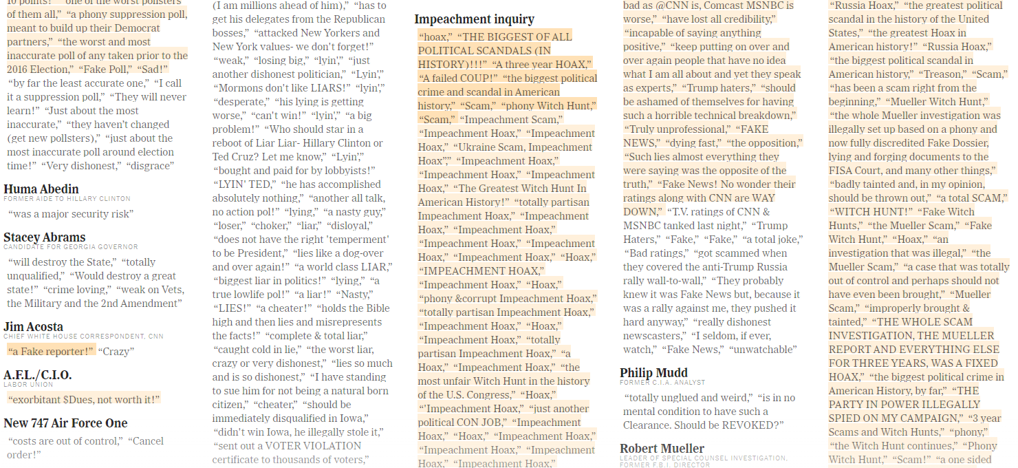 In a word—yes. It’s one thing for us unimportant primates to sling fecal matter inside our digital cage and quite another for a U.S. president or an entertainment network masquerading as a serious news organization to do it. Last year, The New York Times compiled a complete list of former president Donald J. Trump’s Twitter insults between the years of 2015-2021. It’s quite a document.