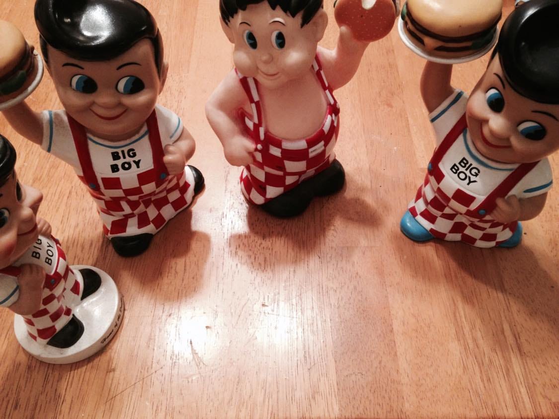 More than anything else, it was this duality, this hidden life of the Bob’s Big Boy that kept me spellbound over the years. Even now, I have a small collection of Bob piggybanks and a BOBblehead (har har) that made the trip with me from Houston to Italy. My boyfriend, John, a native New Yorker who spent the majority of his life in Europe, does not understand the sincerity of my attachment to Bob. I try to explain (***cough*** justify ***cough***) my unseemly obsession, but I always come up short.