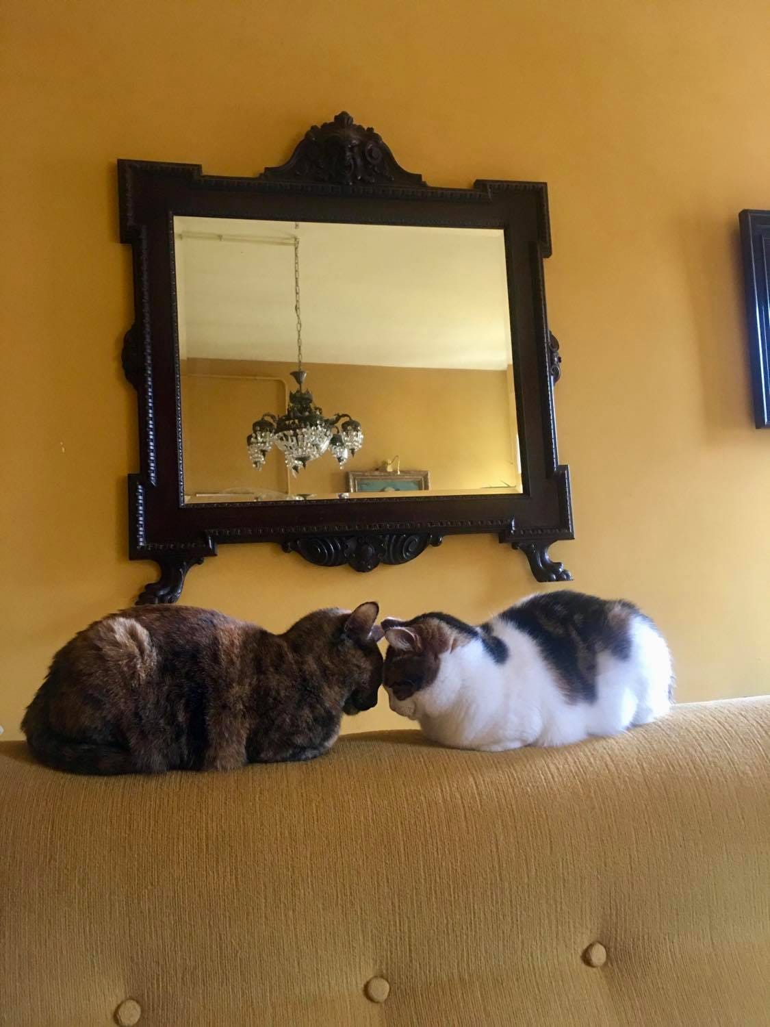 Now, two years later, Olive is a chubby, needy, uncoordinated little squeak-box that drives Bunny crazy. For the first month, Bunny iced us out. She wouldn’t purr. She’d barely look at us. But at this point, if she and Olive aren’t chasing each other around the house, they’re cuddled up next to one another. Olive watches in sick envy as Bunny gracefully leaps from the back of the couch to the top of the armoire where she peers down disapprovingly at the Lesser Creetchur. Olive also lost part of her tail in the accident, so now it’s stick-straight and moves up and down like a dented traffic arm. She’ll never be sleek and athletic like Bunny, who is clearly the Audrey Hepburn of kitties, but I don’t think Olive knows it. Probably better that way.